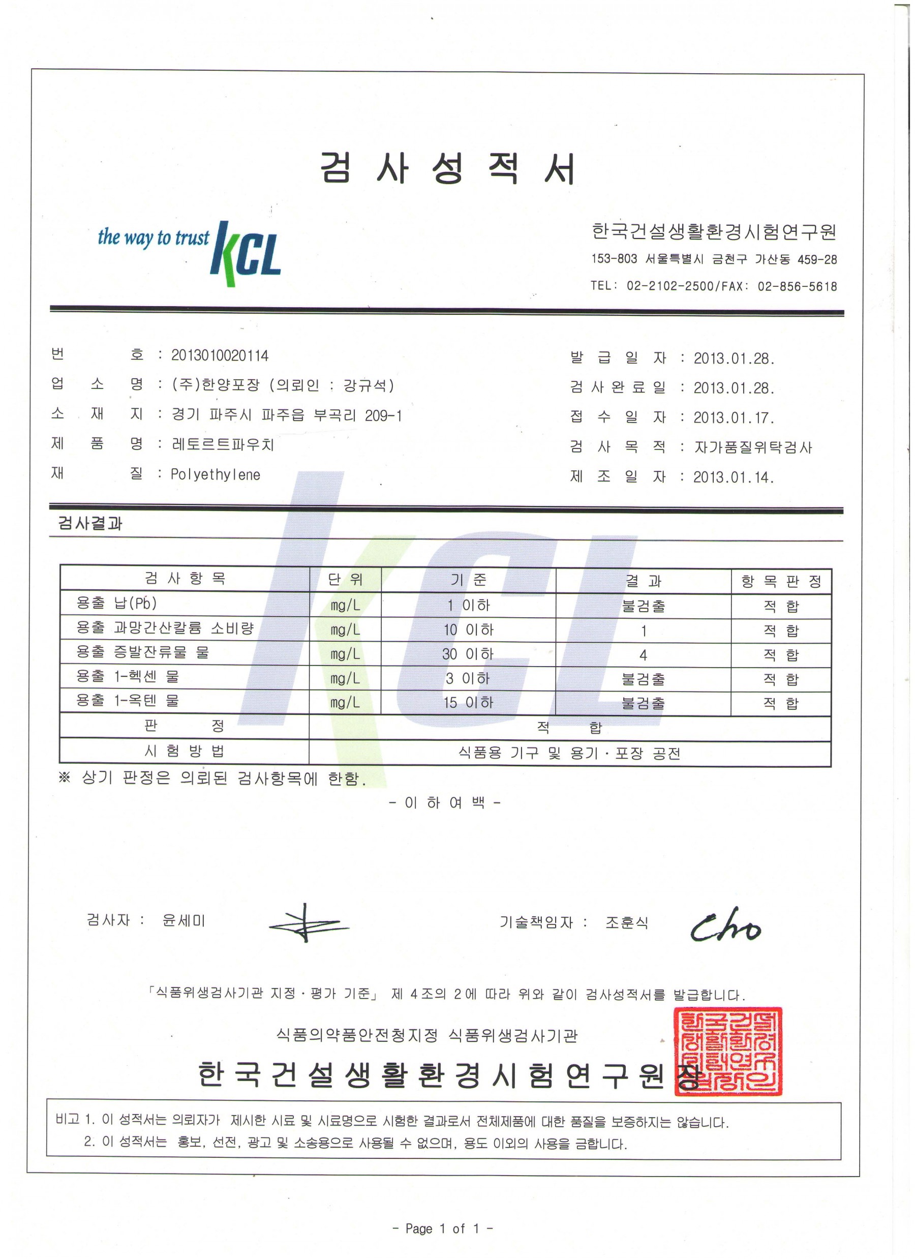 포장지 재질: PET19 + CLP 95(2중지)