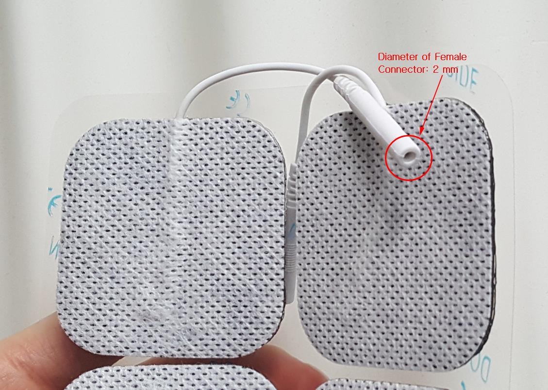 - 2" x 2" Size: Square electrode pads measuring approximately 50 mm x 50 mm